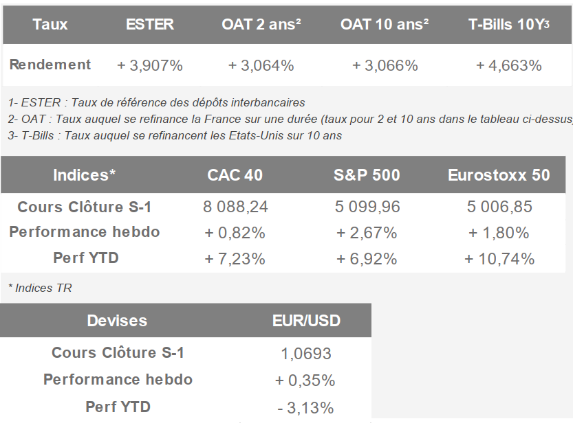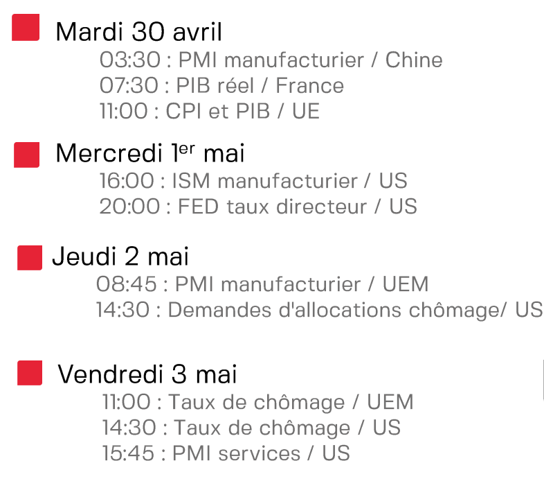 Le PMI composite de la zone pour le mois d’avril est ressorti en croissance à 51.4 après 50.3 en mars, supérieur au pivot des 50. Dans le détail, les services progressent fortement à 52.9 après 51.5 en mars. Cependant, l’industrie manufacturière recule plus que prévu à 45.6 contre 46.5 attendu et après 46.1 en mars. En France, le PMI composite est au plus haut depuis mai 2023 à 49.9. En Allemagne, l’activité du secteur privé renoue avec la croissance en avril à 50.6. Sur fond de désinflation et stagnation de l’économie, la BCE devrait baisser ses taux directeurs en juin.