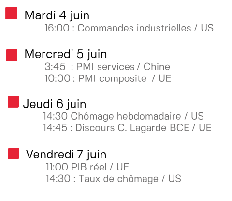 En Europe, le chiffre mensuel du taux d’inflation ressort à 2,6% en mai contre un consensus de 2,5% et après 2,4% en avril. La composante des services (BtoB) tire encore la hausse des prix en mai à +4,1%.