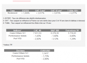 Aux États-Unis, le CPI de février s’établit à +2,4 % en glissement annuel, stable par rapport à janvier, avec une inflation sous-jacente à +2,5 %. Ces chiffres précèdent toutefois le choc pétrolier lié au conflit en Iran. La flambée des prix de l’énergie, non encore reflétée dans les données de février, devrait pousser l’IPC de mars nettement à la hausse, repoussant toute perspective de baisse de taux de la Fed à septembre au plus tôt.